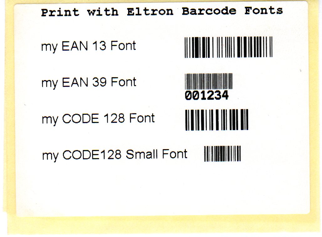 @ 1,1 PRINT "Print with Eltron Barcode Fonts " FONT "Courier New" SIZE 10 BOLD
